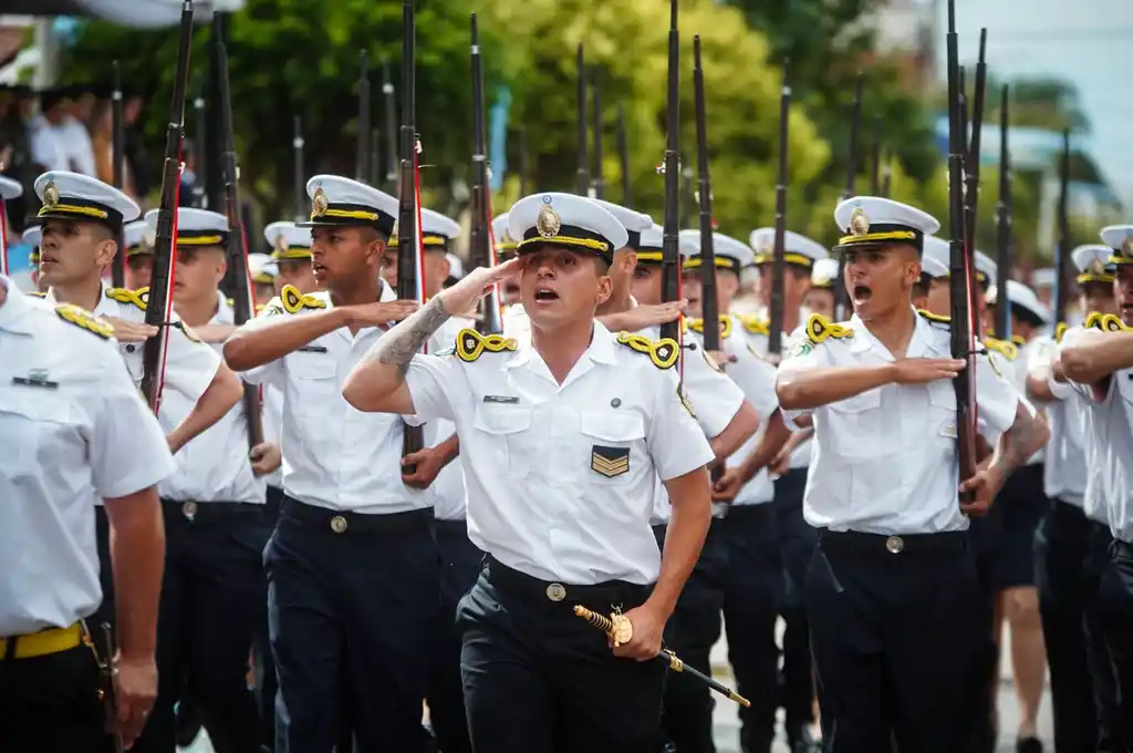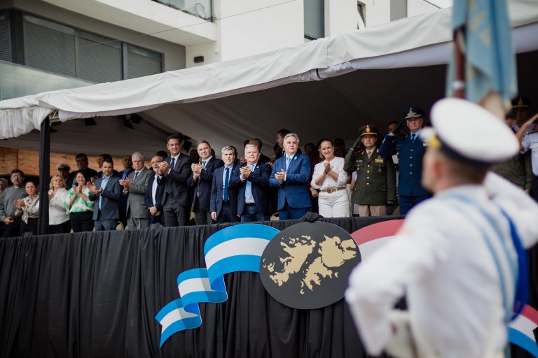 Miles de vecinos se acercaron para acompañar la conmemoración, muchos de ellos con banderas argentinas, y presenciar el desfile organizado en homenaje a quienes participaron del conflicto de 1982.