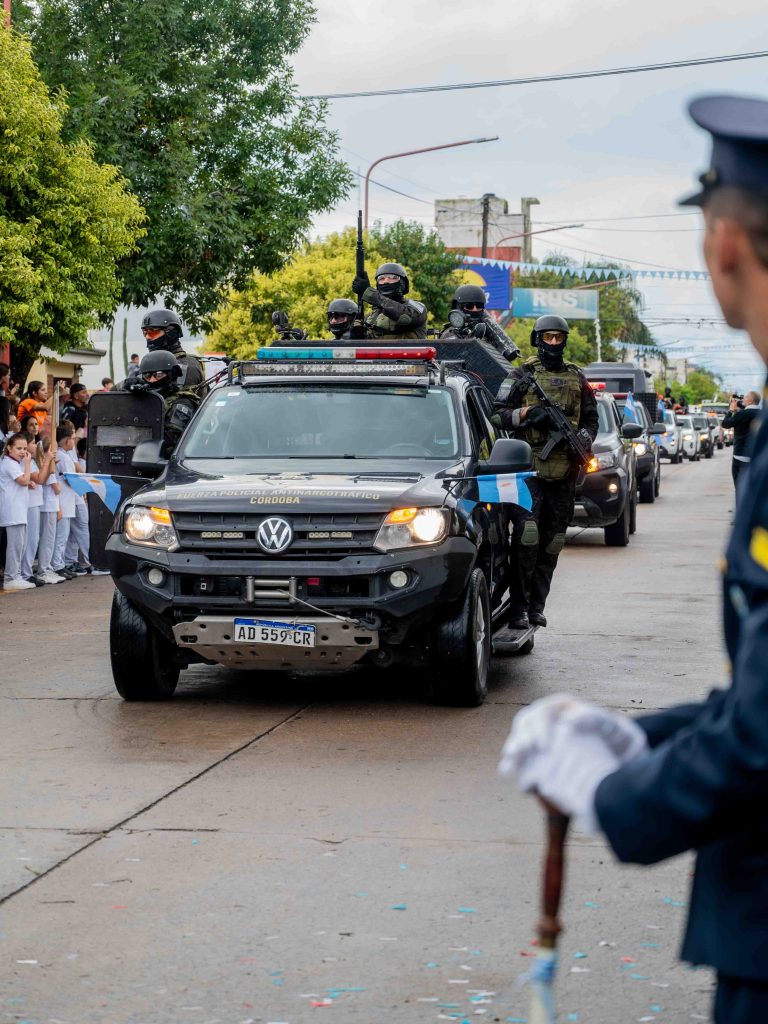 Uno de los momentos centrales fue el desfile cívico-militar, que se extendió a lo largo de más de ocho cuadras y contó con la participación de más de 600 efectivos de fuerzas de seguridad provinciales. También formaron parte unos 70 vehículos, 200 abanderados y escoltas de instituciones educativas y más de 50 instituciones intermedias.