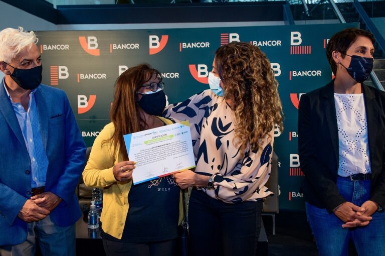 La ministra de Promoción del Empleo y la Economía Familiar, Laura Jure, y el presidente del Banco de Córdoba, Daniel Tillard, realizaron la entrega de certificados a 118 emprendedores y trabajadores cordobeses de la economía popular que finalizaron su capacitación en educación financiera.