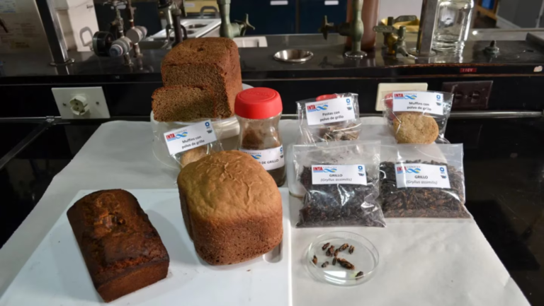 En 2020, por ejemplo, el INTI desarrolló los primeros prototipos de panes, muffins y budines con 90% de harina de trigo y 10% de polvo de grillos adultos.