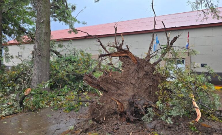 Durante la madrugada de este miércoles, la ciudad de Arroyito y sus alrededores fueron afectados por un fuerte temporal con intensas ráfagas de viento, abundante caída de agua y granizo. El fenómeno provocó la caída de árboles y postes, generando importantes daños materiales y cortes en el suministro eléctrico, tanto en el área urbana como en la zona rural.