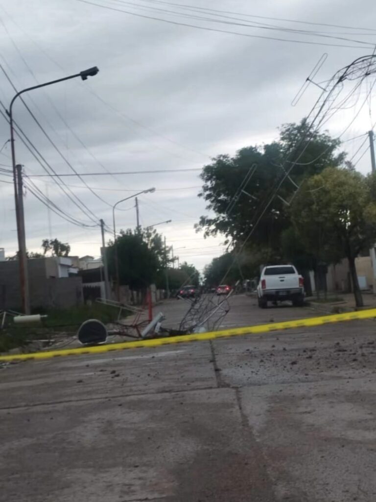Uno de los hechos más relevantes se produjo en la intersección de Güemes y Dalle Mura, donde la caída de una torre de transmisión perteneciente a un medio radial provocó daños en un transformador y afectó el suministro eléctrico en la zona.