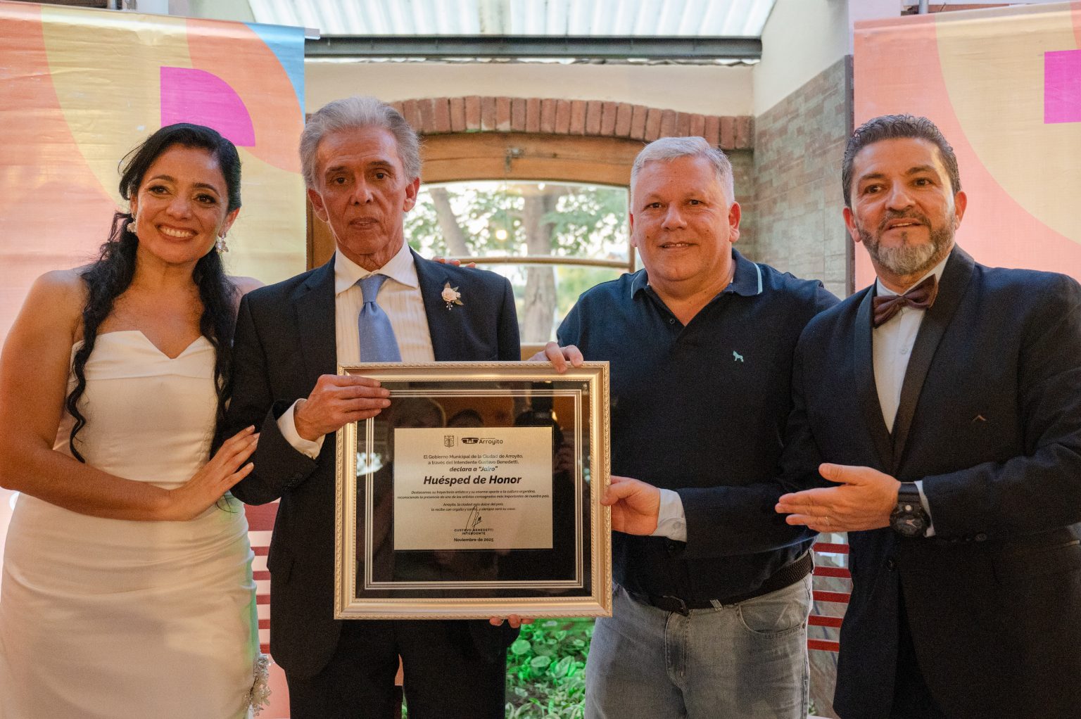 El reconocido cantante cordobés Jairo fue declarado Huésped de Honor de la Ciudad de Arroyito durante su visita del fin de semana. La distinción fue entregada por el intendente Gustavo Benedetti en el marco de una boda a la que ambos fueron invitados.