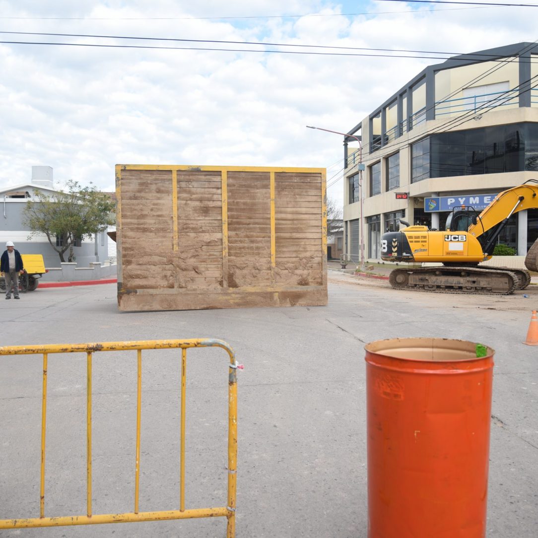 Por el trabajo que se está realizando, también se encuentra interrumpido el tránsito sobre la avenida Mariano Moreno en esquina con calle José A. Vocos y San Martín.